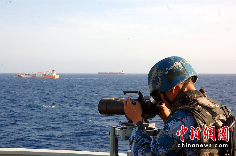 2009年1月29日,中國海軍首批護(hù)航編隊“武漢”艦收到希臘商船“ELENI G”號發(fā)出的緊急呼救。編隊立即派直升機(jī)載著特戰(zhàn)隊員前往救援,發(fā)現(xiàn)3艘海盜快艇正從不同方向圍攻希臘商船。特戰(zhàn)隊員發(fā)射信號彈,成功將其解救。船長激動的說:“感謝上帝!感謝中國海軍!”