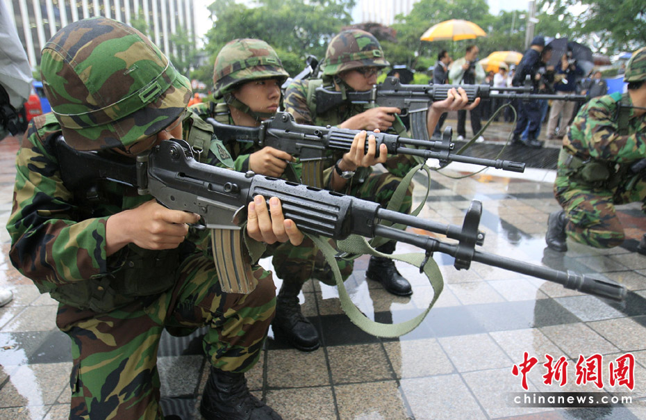 5月24日,韓國軍隊在靠近韓朝非軍事區(qū)的揚(yáng)口舉行軍事演習(xí)。圖片來源:中國新聞網(wǎng)