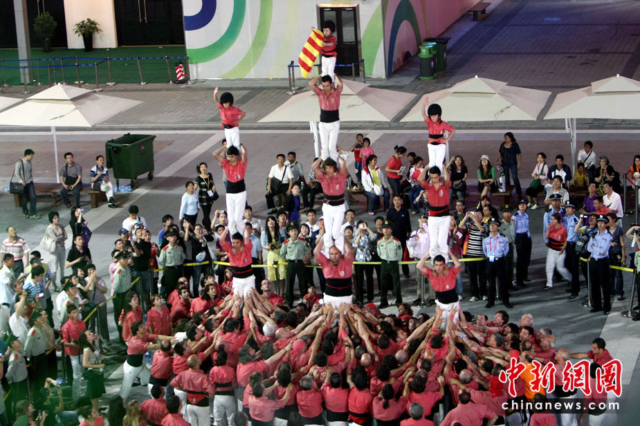5月25日,西班牙“人塔”在上海世博會(huì)歐洲廣場(chǎng)上逐層壘起,為西班牙加泰羅尼亞周助興。“疊人塔”(HUMAN WALL),是西班牙加泰羅尼亞地區(qū)最具傳統(tǒng)特色的民俗節(jié)慶活動(dòng),起源于18世紀(jì)末加泰羅尼亞南部的巴爾斯。后來(lái),“疊人塔”活動(dòng)逐漸在加泰羅尼亞其他地區(qū)流行,進(jìn)而風(fēng)靡整個(gè)西班牙。中新社發(fā) 杜洋 攝