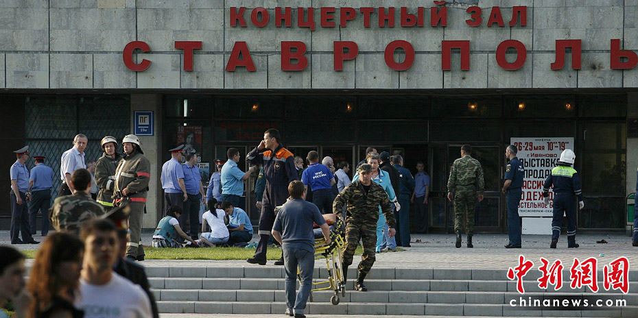 當?shù)貢r間5月26日18時45分,一不明爆炸物在與斯塔夫羅波爾市體育文化宮毗鄰的一個建筑附近發(fā)生爆炸,造成至少5人死亡,46人受傷。警方初步判斷,爆炸造成的死傷人員可能是來參加車臣國家歌舞團舉行的音樂會的觀眾。目前爆炸現(xiàn)場已被封鎖,俄聯(lián)邦總檢察院北高加索和南部聯(lián)邦區(qū)偵查機關(guān)正會同當?shù)鼐胶吐?lián)邦調(diào)查局進行現(xiàn)場調(diào)查。圖片來源:中國新聞網(wǎng)