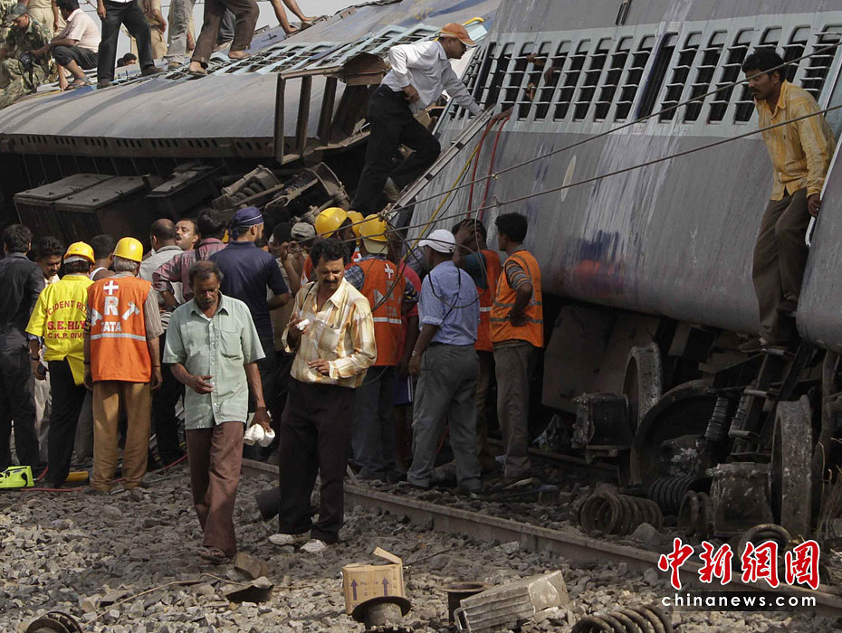 當地時間5月28日,印度一列特快列車在東部西孟加拉邦的西米德納布爾遭反政府武裝襲擊脫軌,造成百余人死傷。圖片來源:中國新聞網