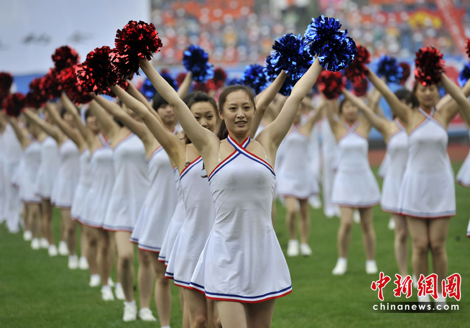 中央國家機關(guān)第三屆職工運動會今日在北京國家奧林匹克體育中心正式開幕。90多個中央國家機關(guān)部門參加開幕式,中共中央政治局常委、國務(wù)院副總理李克強出席活動。圖為開幕式上的健身操表演。中新網(wǎng)記者 金碩 攝