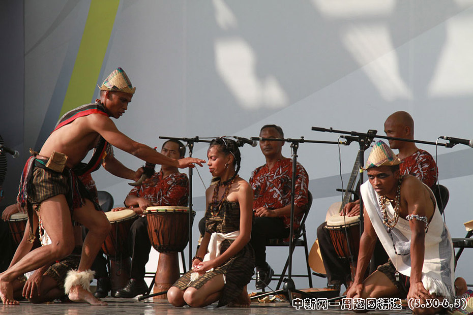 5月30日,馬達加斯加肯特思米諾歌舞團在世博園非洲廣場表演比洛傳統儀式,逼真的神態、激情的表演,博得許多參觀者稱贊。當天是馬達加斯加館日,世博中心內舉行了其國家館日活動,馬方和中方代表共同出席。圖片來源:中國新聞網>>點擊觀看詳細內容