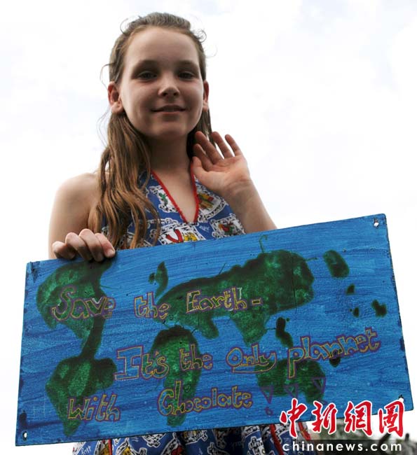 當地時間2010年6月6日,英國倫敦舉行卡姆登綠色市集(Camden Green Fair),這是英國倫敦每年環保領域的“重頭戲”。本屆市集的主旨是要喚起大眾對環境問題的關注,選擇更加可持續發展的生活方式。據活動主辦方預計,本屆市集將吸引來自英國各地和世界各國的2萬多人參加。圖為一位英國小姑娘展示她創作的環保主題繪畫“save the earth”。Fiona/攝 Fiona 馬小剛/文
