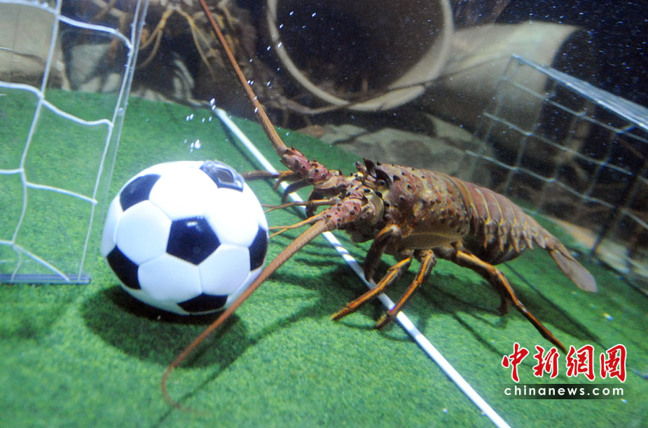 當?shù)貢r間6月15日,德國北部,水族館里的海洋生物爭搶填滿飼料的足球。