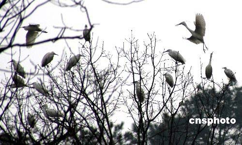 3月7日,在國家級生態示范區浙江省德清縣鐘管境內的幾座山頭上,萬余只白鷺或翩翩起舞、或金雞獨立、或相互追逐,過往行人嘆為觀止,描繪出一幅人與鳥和諧相處的美景。 中新社發 小紹興 攝