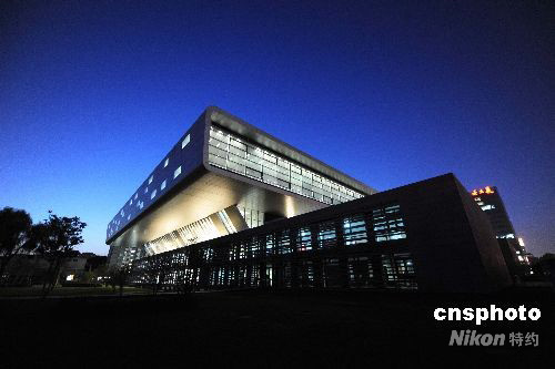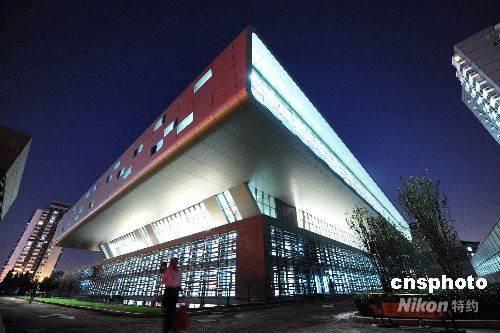9月10日,北京中國國家圖書館新館夜景迷人,其獨特的建筑造型成為北京新地標。中新社發 廖攀 攝