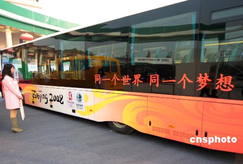 2008北京奧運電動客車人性化設計了落地車門。 國家電網展出的電代油奧運客車。