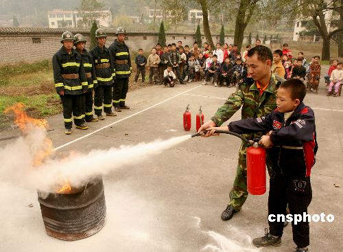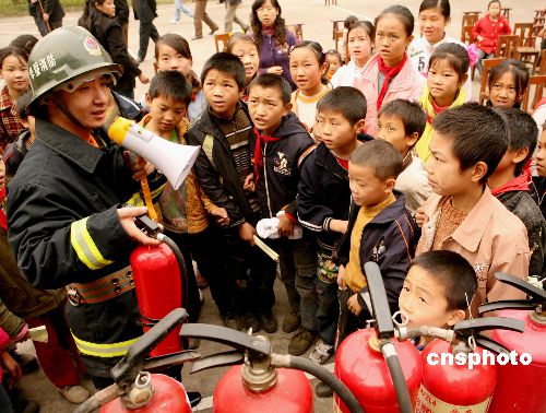 11月7日,四川華鎣市紅巖小學的“留守兒童”在接受消防官兵傳授消防安全知識。據悉,華鎣山區有近10萬名“留守兒童”,為使這些孩子掌握正確的用火、用電知識,增強安全意識,提高自我保護能力。11.9前夕,廣安市華鎣消防大隊組織隊伍深入山區各所學校,為“留守兒童”講授消防安全知識。中新社發 邱海鷹 攝