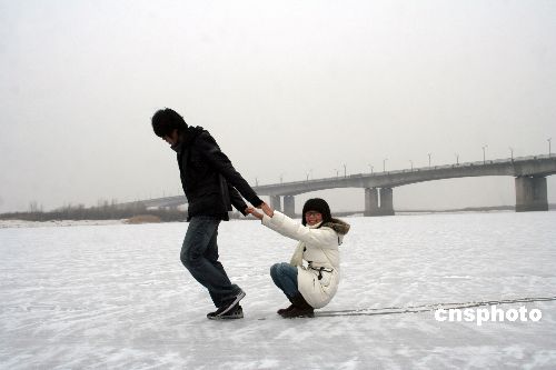 11月19日零時(shí),黑龍江哈爾濱氣溫驟降,松花江段全面封江。當(dāng)日13時(shí),當(dāng)?shù)赜瓉淼谝粓?chǎng)雪。中新社發(fā) 姚庭山 攝