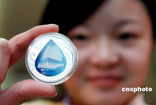 2007年11月16日,經(jīng)北京奧組委授權(quán),中國金幣總公司近日起發(fā)行北京2008奧運會場館紀念章。場館紀念章主題圖案采用了國家游泳中心——“水立方”為主要設(shè)計元素,并刊“第29屆奧林匹克運動會場館紀念”中英文字樣,采用鏡面、噴砂、高浮雕及彩色移印等造幣工藝,充分展現(xiàn)了高科技含量的設(shè)計鑄造技術(shù)。中新社發(fā) 馬健 攝