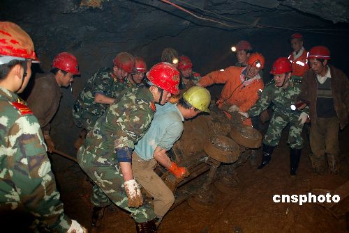 12月13日,安徽武警總隊蕪湖支隊武警官兵在井下救援。當天,救援指揮部調集武警蕪湖支隊40名官兵前來增援地下清淤及鉆孔工作,井下負十三米礦井巷道清除淤泥向前推進16.8米、通風口鉆孔17米。當天下午,救援指揮部救援人從從探測儀上發現,井下有生命跡象。12月11日18時許,安徽繁昌縣陽沖鐵礦發生一起井下坍塌事故,坍塌的泥石堵住了安全出口,正在作業的7名礦工被困井下。中新社發 揚勛 攝