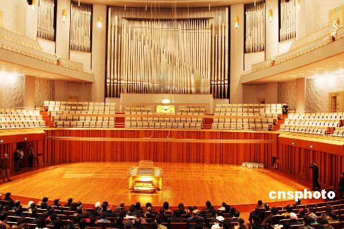 中國國家大劇院將于12月22日和23日舉辦盛大開幕音樂會,并由此拉開國家大劇院首個演出季的帷幕。作為最重要演出的開幕音樂會,其開幕式音樂會的音樂總監(jiān)陳佐煌特意在節(jié)目演出的安排上凸顯了中國文化,邀請的樂團、指揮家、演奏家均來自中國。據(jù)悉,本場音樂會將推出最具代表性的古箏、二胡、琵琶、笛子和揚琴,由當(dāng)今中國民族音樂界五位頂級演奏家馬曉輝、吉煒、張強、龐波兒和戴亞聯(lián)袂演出經(jīng)典民樂作品。圖為藝術(shù)家參觀國家大劇院音樂廳。中新社發(fā) 鄭雄增 攝