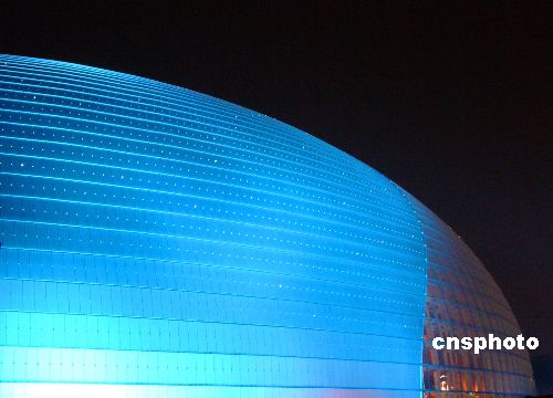 12月30日晚,北京國家大劇院四周燈光閃爍,夜色璀璨,蔚藍色的國家大劇院在夜幕中顯得美麗迷人。當晚,有關人員在調試燈光,以迎接12月31日在這里舉行的2008年新年音樂會。中新社發 玉龍 攝