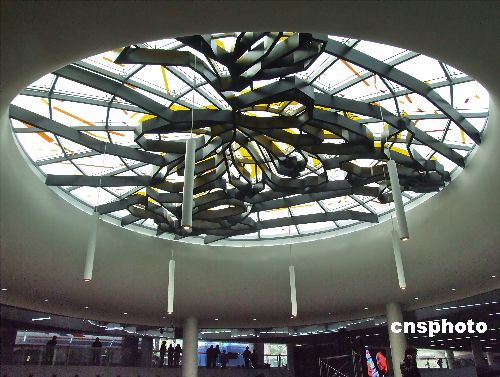 2008年1月7日消息,上海人民廣場站1、2、8號線三角地換乘大廳的改造已于日前全部完工,其頂部采用全新鏤空設計,造型如一朵朵徐徐綻放的白玉蘭花。中新社發 井韋 攝