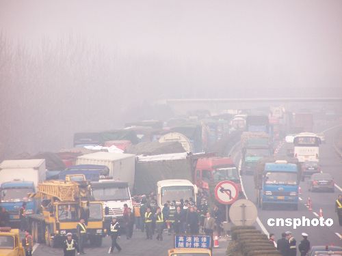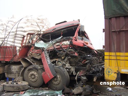 1月8日8時許,由于大霧的原因,合徐高速33公里至37公里段發生一起特大交通事故,一百余輛車連綿相撞,事故至少造成7人死亡12人受傷。事發后交警、消防、衛生等部門迅速趕至現場處置,到晚上7時許,該路段才陸續恢復通行。中新社發 朱小輝 攝