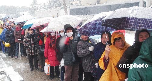 圖:近千市民冒雪排隊領取臘八粥