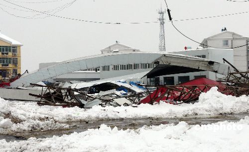 圖:合肥一加油站被暴雪壓塌