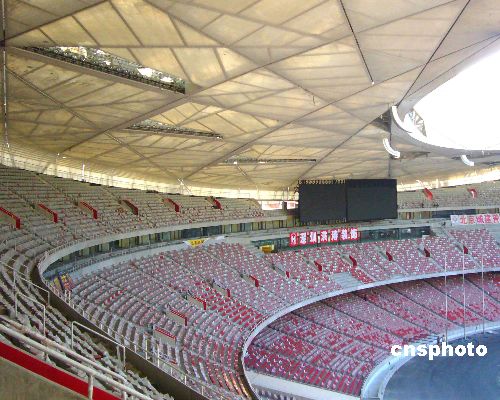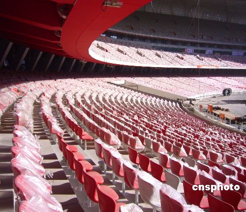 2008年1月29日,由中國石化承擔的北京國家體育場“鳥巢”8萬個固定座椅的原料研發、外形設計、生產制作及現場安裝項目圓滿完工。各項收尾工作正加緊進行。據悉,座椅采用“中國紅”和“長城灰”兩種顏色,而且在室外耐紫外線照射下,三年風吹日曬顏色不發生變化。中新社發 玉龍 攝