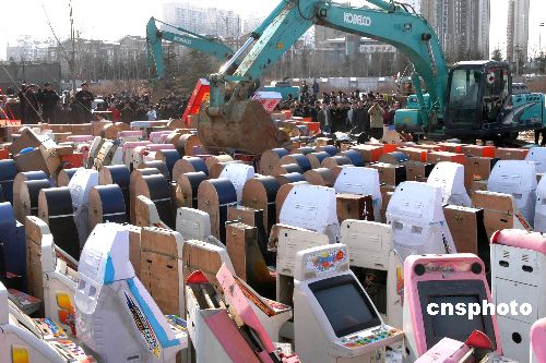 1月30日,中國(guó)農(nóng)歷鼠年春節(jié)前夕,河南洛陽(yáng)警方公開(kāi)銷毀2367臺(tái)游戲賭博機(jī)。1月下旬,河南省洛陽(yáng)警方開(kāi)展“利劍一號(hào)”行動(dòng),嚴(yán)厲打擊利用電子游戲機(jī)賭博違法犯罪活動(dòng),此次行動(dòng)中查處利用游戲機(jī)違法賭博場(chǎng)所156家。