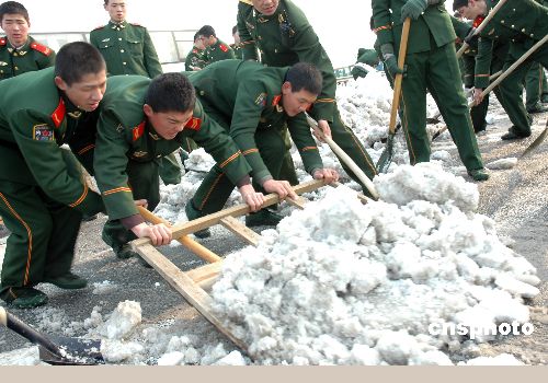 圖:武警江蘇總隊官兵“交通大動脈”上抗雪災(zāi)