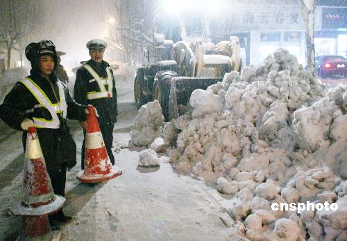 圖:風雪中的交巡警