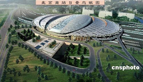 北京南站計劃于4月25日進入機電設備調試,6月26日基本完工全面進入試運行,8月1日開通運營。圖為北京南站效果圖。中新社發 張宇 攝