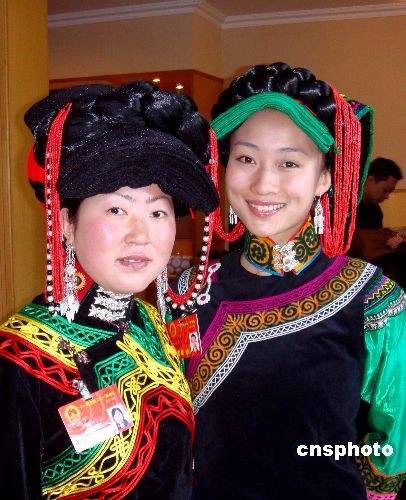 中國的全國人大代表日趨年輕化,來自四川的全國人大代表毛金芳、張蓓蓓(右)首次成為“80后”代表,即所謂出生于1980年以后的“獨(dú)生子女”新生代青年。毛金芳1980年12月出生,是雅安市石棉縣安順鄉(xiāng)鹿子坪村婦女主任。張蓓蓓1982年4月出生,為涼山州歌舞團(tuán)三級(jí)舞蹈演員。中新社發(fā) 黃翔 攝