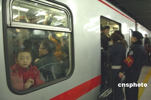 3月10日,北京地鐵里擁擠的人群。根據統計,北京地鐵在2月29日創下日客運量351萬人次的歷史紀錄。3月7日,北京地鐵全網客運量再創新高,達到359.7萬人次。其中地鐵5號線、13號線、八通線也同時創下各自歷史新高。中新社發 張朋 攝