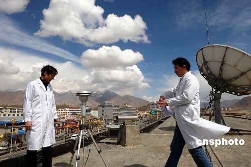 3月20日,西藏自治區環境保護局的工作人員正在監測大氣數據。據西藏自治區環境保護局局長張永澤介紹,受打砸搶燒事件影響,3月14日拉薩市區大氣污染是有史以來最嚴重的。中新社發 廖攀 攝