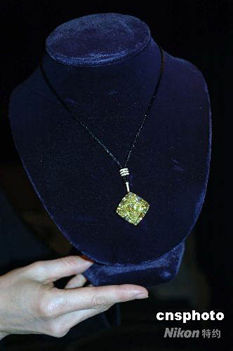 4月27日,香港佳士得2008春季拍賣精品在上海外灘茂悅大酒店預展。這場拍賣會將于5月22日至29日在香港會議展覽中心舉行。這次拍賣大約分為14個不同類別,包括多件收藏珍品。在5月28日“瑰麗珠寶及翡翠首飾”專場,拍品包括重67.09克拉的罕見黃鉆吊墜一對,估價為1600萬到2500萬。中新社發 崔煜芳 攝