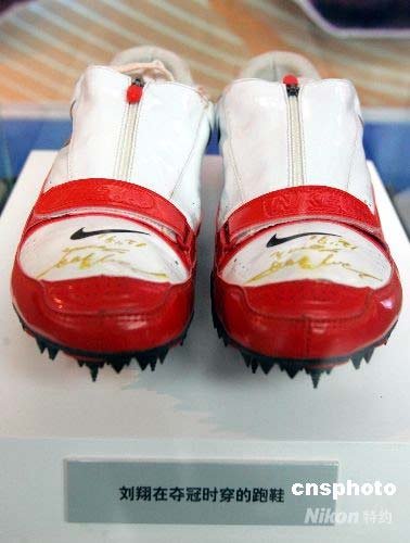 圖:劉翔雅典奪冠時所穿跑鞋在滬亮相