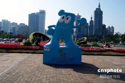 5月7日,上海浦東世紀廣場的“海寶”雕塑。一批批高大的由玻璃鋼材質制成的“海寶”雕塑落戶在上海街頭和社區,增添了“世博”的氛圍,成為一道亮麗的風景。中新社發 周東潮 攝