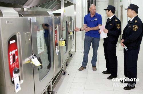 近日,北京海關在媒體村對一批奧運物資進行現場驗放。該批物資為奧運會所需的廚房設備,共計3個集裝箱。北京海關組織24小時的現場支持,到運動員村,媒體村,國際廣播中心和新聞媒體中心等各個現場對貨物進行查驗。中新社發 雷虹 攝