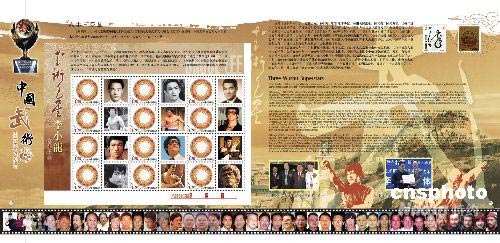 5月9日,全球首部以詳盡介紹武術發展為選題的郵票珍藏冊《中國武術》在北京舉行了首發式。鑒于李小龍將中國武術推向世界的貢獻,中國武術協會特意留出一個版面專門介紹,并首次推出不干膠的李小龍肖像個性郵票,肯定了其在武術界的地位。中新社發 王歡 攝