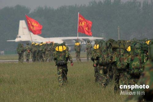 5月13日,空降兵6500多名官兵分別乘坐空軍遠輸機奔赴四川重災區,分五路兵力,分別在什邡、德陽、茂縣、等重災區展開救援。圖為空降兵緊急登機。中新社發 譚超 攝