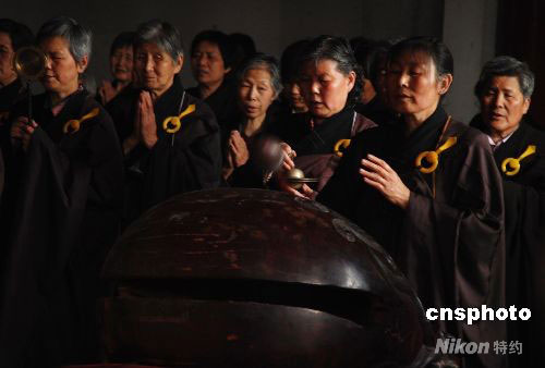 5月15日,江蘇無錫南禪寺舉行賑災祈福吉祥法會。地震發生后,中國國家宗教局十三日立即向受災地區捐款,同時向在北京的全國性宗教團體等發出通知,號召他們緊急開展向地震災區捐款活動。中新社發 楊慧峰 攝