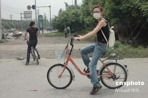 5月16日,四川汶川“五·一二”大地震重災(zāi)區(qū)都江堰,都江堰景區(qū)解說(shuō)員成為災(zāi)區(qū)志愿者,奔波在街頭尋覓需要幫助者。中新社發(fā) 肖龍聯(lián) 攝