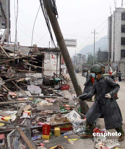 圖:地震重災(zāi)區(qū)什邡紅白鎮(zhèn)開始消毒防疫