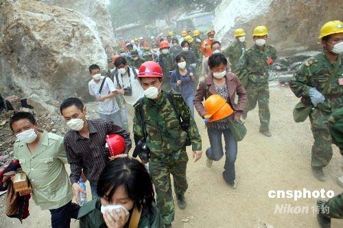 5月17日下午3時左右,北川余震不斷或有洪災,官兵群眾撤離。上游水庫目前平穩未決堤,震區堰塞湖告急。中新社發 劉震 攝
