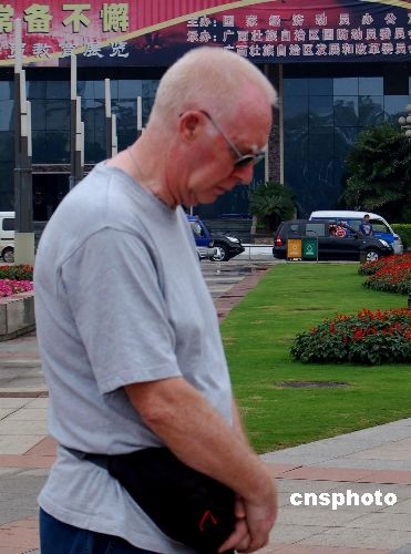 5月19日14時(shí)28分,廣西南寧市民自發(fā)聚集在民族廣場為四川地震遇難同胞致哀,一名外國朋友行至此地,也同中國民眾一樣低頭為遇難者默哀。中新社發(fā) 劉萬強(qiáng) 攝
