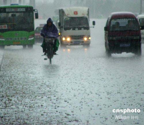 6月7日中午,沈陽市區出現降水天氣,一時間大雨如潑,給出行的市民帶來極大不便。涼爽的氣溫為參加高考的考生送來一個清爽的高考日。中新社發 王齊波 攝