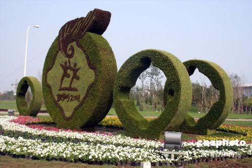 2008年7月4日,遼寧省沈陽市渾南新區又一個立體花壇完工。據悉,沈陽市城市建設管理局以“喜迎奧運、地方人脈、自然生態、和諧發展”為主題,通過舉辦立體花壇大賽,在沈陽主要街路、廣場等處建設20個具有濃郁奧運特色的立體花壇,為奧運增彩。中新社發 劉寶成 攝