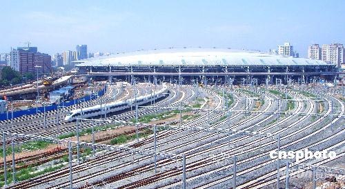 7月6日,北京新南站在藍天的映襯下顯得更加美麗壯觀。當日上午,京津兩地記者以及邀請到的市民代表200多人登上列車,從北京南站出發,平穩運行32分鐘后,于9點28分到達天津站,順利完成列車的首次載客試運營。中新社發 玉龍 攝