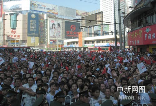 7月7日,奧運(yùn)火炬在蘭州傳遞,激情澎湃的蘭州市民,為親睹“祥云”,早早的匯集在火炬接力的每一段路邊。劉薛梅 攝