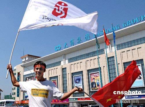 7月12日上午8時(shí)許,2008北京奧運(yùn)火炬在黑龍江省大慶市傳遞。眾多大慶市民前來為奧運(yùn)火炬吶喊助威。中新社發(fā) 濱海之光 攝
