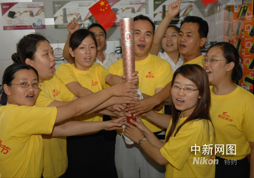 7月26日,河北滄州市某雷鋒志愿者組織的志愿者們親手觸摸到了火炬手曾傳遞過的“祥云”火炬,感悟火炬傳遞精神,激發干好本職工作的熱情,提高服務質量,以實際行動為奧運加油。 王少華 攝