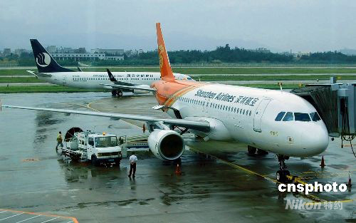 隨著臺風“鳳凰”漸行漸遠,七月三十日,福州機場航班全面恢復正常,迎來旅客出行高峰。截至十八時,已有五十八個航班正常起飛。由于“鳳凰”登陸地點在長樂機場附近的福清市,長樂航空港倍受影響,二十八日和二十九日,共有一百七十二個航班被取消,造成大量旅客滯留。圖為等待起飛的深圳至大阪的中轉飛機。中新社發(fā) 龍景定 攝