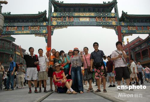 8月7日,北京前門大街在經(jīng)歷一年多時間的保護、修繕后正式開街。現(xiàn)有12家商戶開張營業(yè),預(yù)計奧運會之后將全面開市。開街后,前門大街將實行24小時全時段全覆蓋精細化城管執(zhí)法模式。當日眾多游人前來參觀前門大街。中新社發(fā) 張雙雙 攝