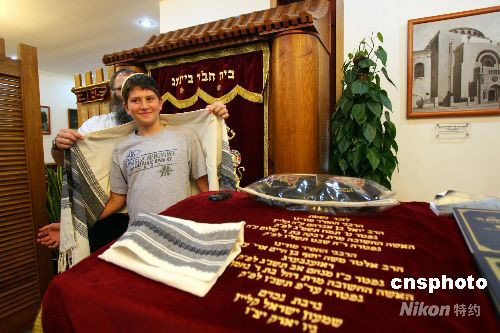 與父母一起到北京觀看奧運會的13歲美國少年依斯科,8月12日在北京猶太人中心精心準備即將到來的成人禮儀式,他表示能夠在中國度過這個特別的日子格外興奮。 中新社發(fā) 王瑤 攝
